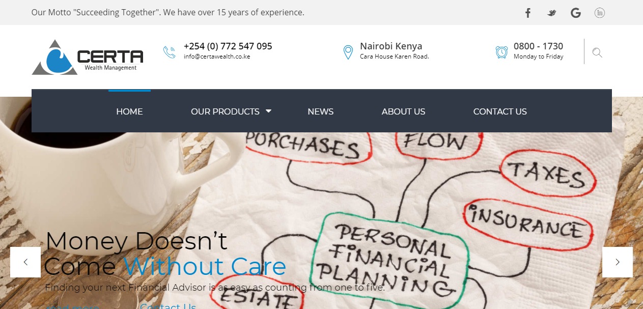 We are a team of professionals working together to ensure that every aspect of you or your company’s financial health, needs, goals and security are taken care of. As an independent firm we pride ourselves in having the ability to go to the market and access the best products out there to build the perfect solution for your needs. We are a Kenyan business with global abilities, whether it’s for the simplest of needs or complex strategy on a multi-national level both individually and corporate.