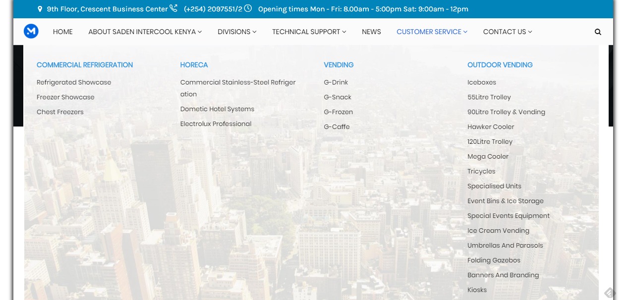 Sanden Intercool (Kenya) Ltd brand is well recognized by beverage industries worldwide as one of the leading brands of Commercial Refrigerated Showcase, offering a full range of Glass Door Merchandisers, Freezer Showcases and Open Front Showcases. Sanden Intercool (Kenya) Ltd is also a leading manufacturer of Stainless Steel commercial Refrigerators and Freezers.