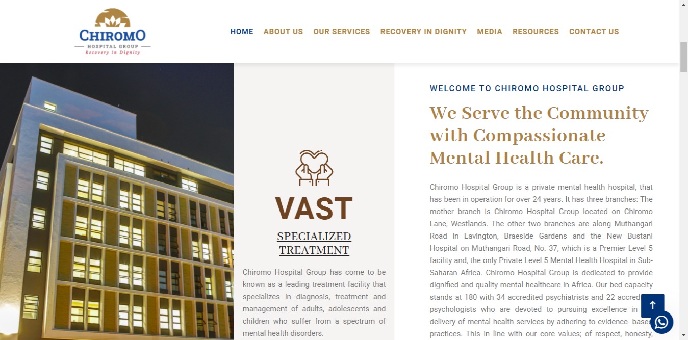 Chiromo Hospital Group is dedicated to provide dignified and quality mental healthcare in Africa. Our bed capacity stands at 180 with 34 accredited psychiatrists and 22 accredited psychologists who are devoted to pursuing excellence in the delivery of mental health services by adhering to evidence- based practices. This in line with our core values; of respect, honesty, innovation and reliability.