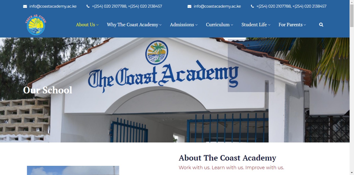 Coast Academy was founded in 1970, by Academic Services Limited, as part of a programme to establish centres of academic excellence in Kenya. The Academy is in two sections; the Junior School (Playgroup to Year 6), and the Senior School (Year 7 to A level). These schools situated in Kizingo. We provide a conducive learning environment for all learners. The school has recently embarked on an expansion programme that aims to enhance existing facilities.